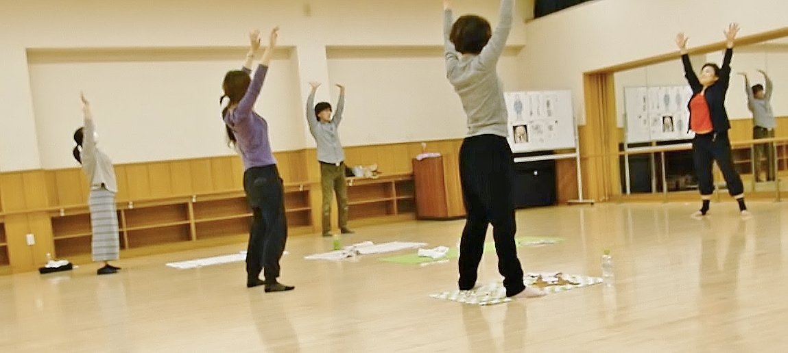 バーを使ったウォーミングアップで、全身まんべんなく均等になるようにほぐしてから、「バルーンメソッド」の呼吸法。エクスターナル(外側)とインターナル(内側)への意識、空間の捉え方を体感で感じて行っていただきました。